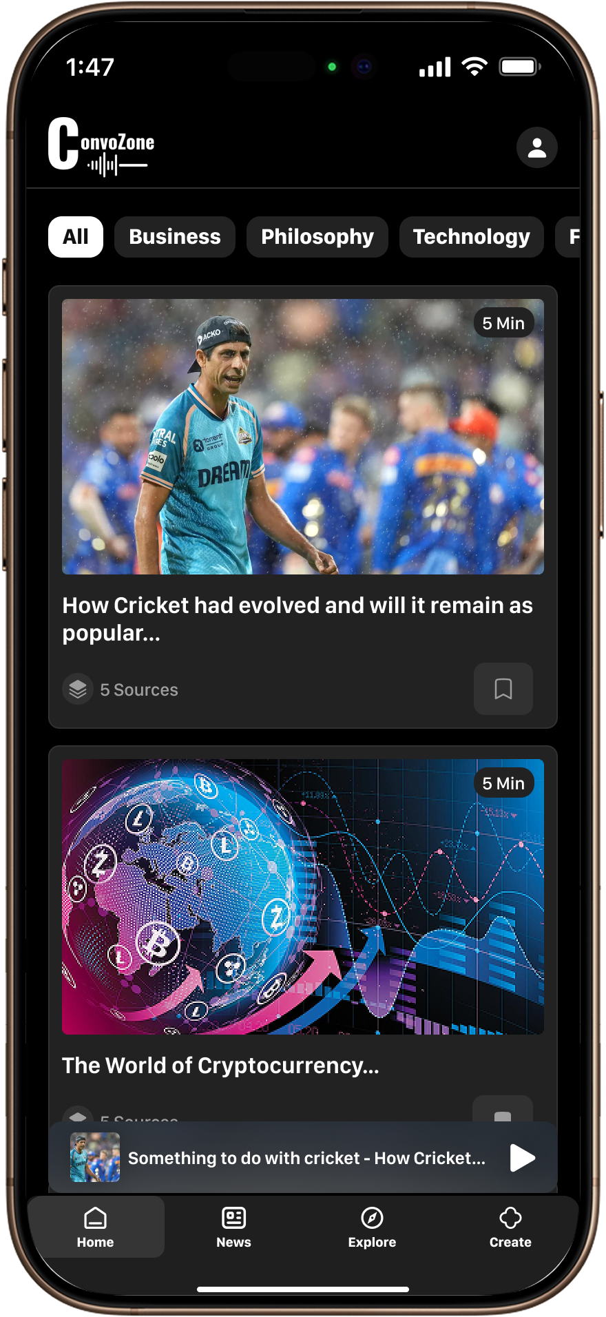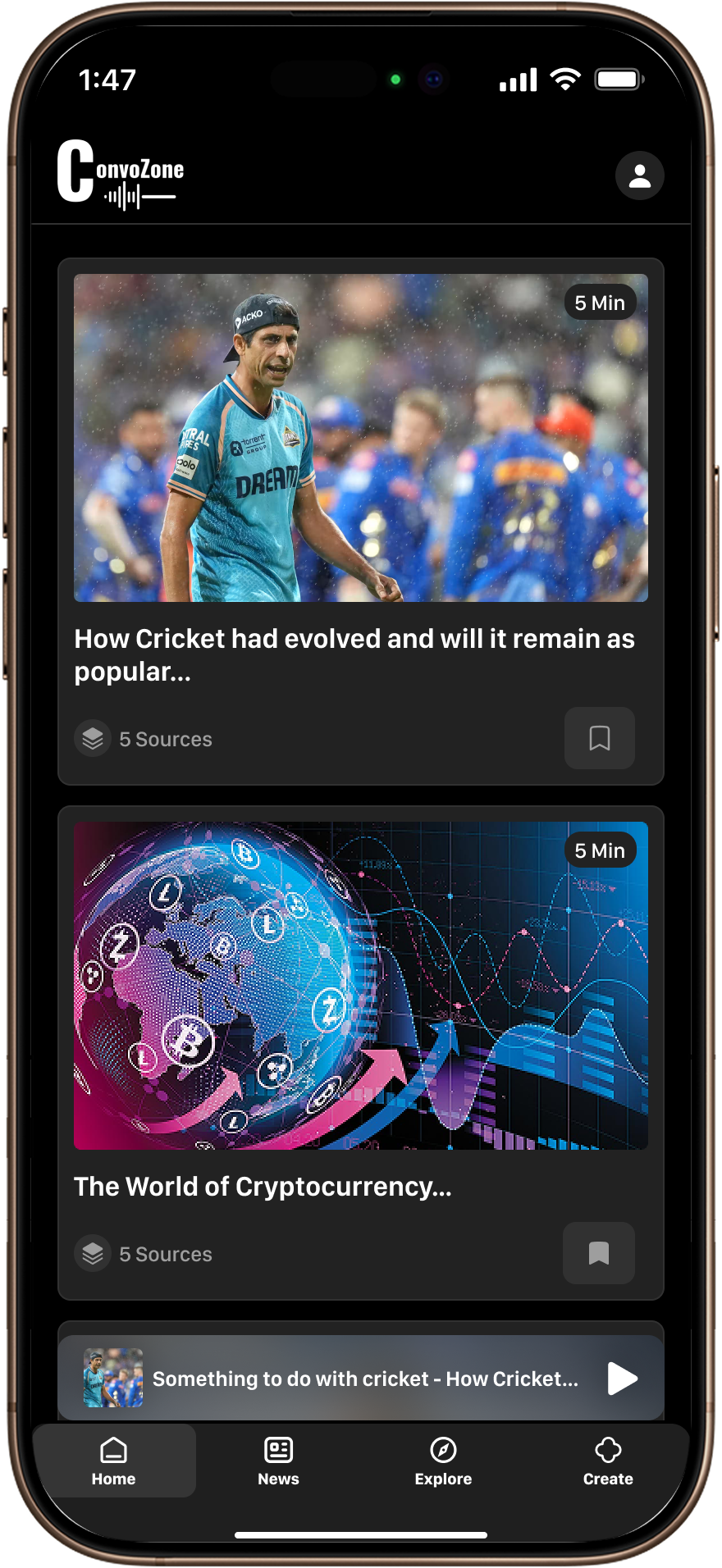 Our AI searches real time for key information and creates a stimulating & information rich podcast-style Conversation.
